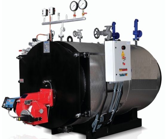 • Smoke tube, three pass, fully wetback, package type boiler.